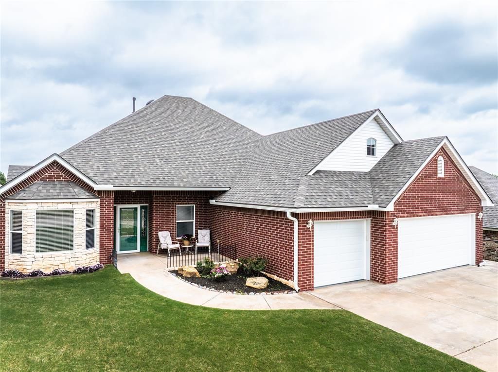 Are you looking for room to grow, space to spread out, or a home that can adapt to your needs? How about nearly 3,000 square feet in sought-after Choctaw Schools?This thoughtfully designed home offers 3 bedrooms plus a private study, bonus room, sunroom, multiple living areas, and both formal and casual dining spaces. The oversized great room creates an ideal central gathering space, while the kitchen features a newer 5-burner gas cooktop, newer dishwasher, walk-in pantry, and extensive cabinetry with pull-out lower shelves for easy organization.The primary suite is a true retreat, with enough space for a treadmill, desk, reading nook, or private sitting area. On the opposite wing of the home, the secondary bedrooms offer privacy, including one with direct access to the second full bath.Many recent improvements were made for the sellers' own long-term enjoyment-including an upgraded HVAC system, impact-resistant roof, premium garage doors, tankless water heater, and other efficiency-minded updates. Additional features include central vacuum, above-ground storm shelter, oversized gutters, 10-foot ceilings throughout the main level, and a 3-car garage.Step outside to enjoy a covered patio and storage building with electricity. Neighborhood amenities include ponds, park areas, and convenient access to Tinker Air Force Base. Zoned for the new elementary school opening Fall 2026.Rare combination of space, flexibility, and meaningful updates-schedule your showing before it's gone.