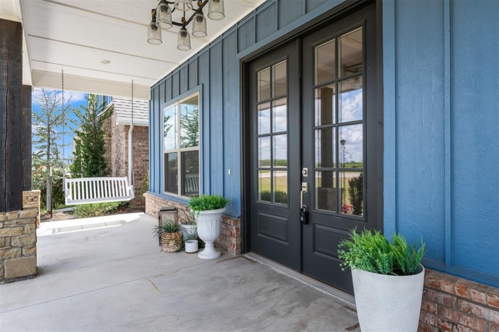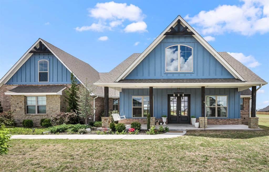 Welcome to Brentwood - a highly desired gated addition. It's peaceful and quiet in this neighborhood away from the hustle and bustle of city traffic. Nestled on an extra large and spacious .76 acre lot this home is a showstopper from every angle. It gives you that peaceful out-of-town feel while keeping you close to I-35, OU, Riverwind Casino, shopping and dining options. Calling all classic farmhouse lovers! Start your day on this lovely and peaceful front porch swing. Inside the home, the layout includes 5 bedrooms, 3 full baths + an adorable powder bath with a shiplap accent wall, and an oversized 3-car garage with two entrances. A breathtaking, cathedral-vaulted great room flows across the great room and right into the kitchen, creating the ultimate central gathering space. It features custom barn doors, a floor-to-ceiling shiplap fireplace, and double doors leading to a large covered patio. You will love your new kitchen. It has been designed with a large island, abundant storage, oversized white farmhouse sink, and double ovens! You'll obsess over the true walk-in butler's pantry, complete with a countertop and outlets perfect for hiding your appliances as well as shelving for all of your storage needs. The master suite is an oasis with double vanities, a custom shower, and a deep water freestanding tub that is so relaxing at the end of your day. The massive master closet has been thoughtfully designed with custom shelving, multiple hanging rods, sitting bench, mirror and shoe shelving! Need more? With a house this amazing, even the utility room has upgrades - a long bonus countertop space along and utility sink. You might not hate doing laundry once you move- in. With huge walk-in closets and two flex spaces (perfect as a study and bonus room, or 4th/5th bedrooms), this home is full of upgrades and waiting for its new family. Schedule your showing and welcome home!